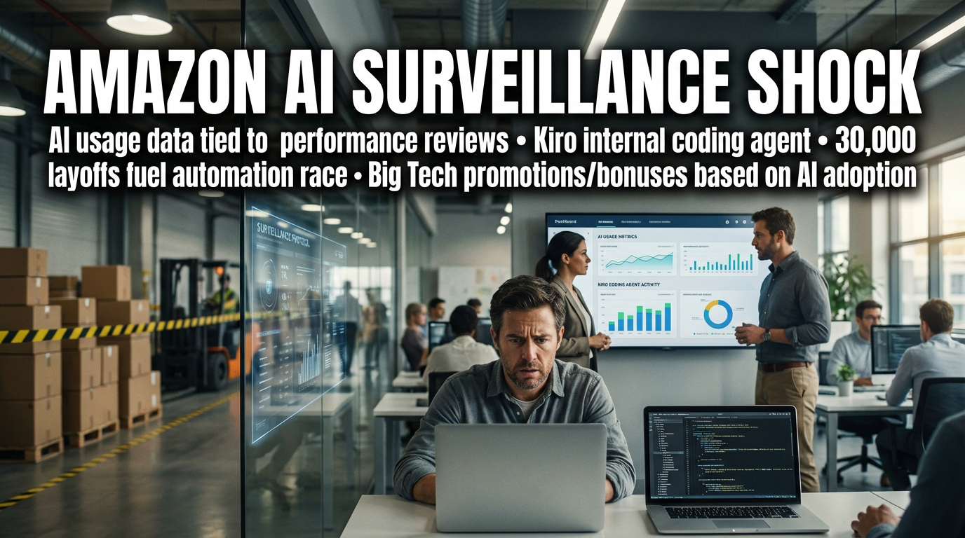 Amazon AI surveillance, promotions tied to usage, layoff panic