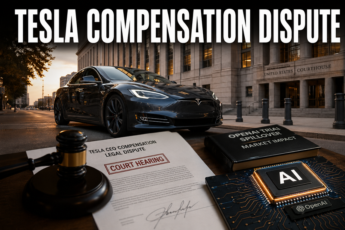 – Tesla rebounded from an intraday selloff to close near $378. – The catalyst was SEC disclosure and increased confidence in implementation of Musk’s compensation package. – Musk is positioned to receive ~304 million shares, lifting ownership to approximately 20.3%. – The previously discussed 96 million-share interim award does not appear to be additive. – The primary structural change is Tesla’s Texas charter, introducing a 3% shareholder threshold for certain lawsuits. – This reduces minority-shareholder legal leverage while potentially improving managerial stability. – The OpenAI trial commenced the same day, testing AI ownership/governance and nonprofit principle issues. – Trial developments and potential Musk testimony may add volatility to Tesla and broader tech sentiment.